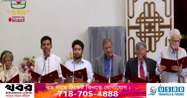 শপথ নিয়েছেন অন্তর্বর্তী সরকারের প্রধান ড. মুহাম্মদ ইউনূস এবং অন্য উপদেষ্টারা। বৃহস্পতিবার রাত ৯টা ২২ মিনিটে শপথ নেন ড. মুহাম্মদ ইউনূস এবং পরে ৯টা ২৮ মিনিটে শপথ অন্য উপদেষ্টারা।