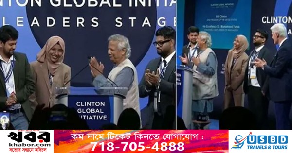 বাংলাদেশের ছাত্র আন্দোলনের তিন সমন্বয়ককে বিশ্বমঞ্চে পরিচয় করিয়ে দিলেন অন্তর্বর্তী সরকারের প্রধান উপদেষ্টা অধ্যাপক ড. মুহাম্মদ ইউনূস। মঙ্গলবার নিউইয়র্কে ‘ক্লিনটন গ্লোবাল ইনিশিয়েটিভ লিডারস স্টেজ’ অনুষ্ঠানে বক্তব্যের শেষ দিকে প্রধান উপদেষ্টার বিশেষ সহকারী মাহফুজসহ দুই সহকারী প্রেস সচিব সুচিস্মিতা তিথি এবং নাইম আলীকে ডেকে নিয়ে বিশ্ব নেতাদের সামনে পরিচয় করিয়ে দেন।
