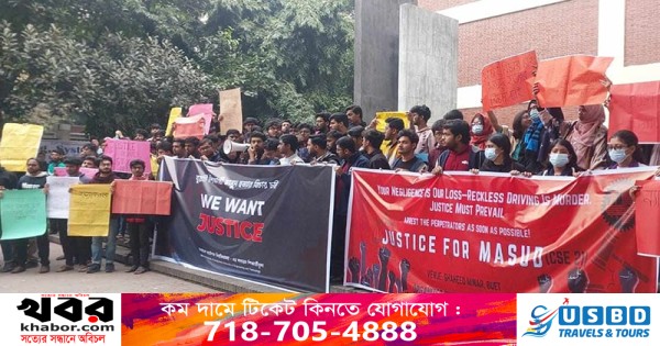 রাজধানীর পূর্বাচলে গাড়ির ধাক্কায় বাংলাদেশ প্রকৌশল ও প্রযুক্তি বিশ্ববিদ্যালয়ের (বুয়েট) শিক্ষার্থী মুহতাসিম মাসুদের নিহতের ঘটনায় দোষীদের সর্বোচ্চ শাস্তি নিশ্চিতসহ পাঁচ দফা দাবি জানিয়েছেন বুয়েট শিক্ষার্থীরা।