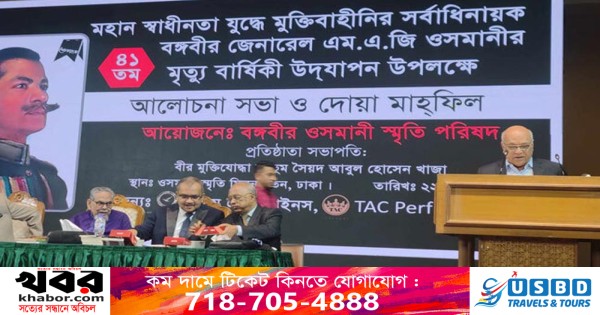 শনিবার (২২ ফেব্রুয়ারি) রাজধানীর ওসমানী স্মৃতি মিলনায়তনে বঙ্গবীর ওসমানী স্মৃতি পরিষদ আয়োজিত মহান স্বাধীনতা যুদ্ধে মুক্তিবাহিনীর সর্বাধিনায়ক বঙ্গবীর জেনারেল এম এ জি ওসমানীর ৪১তম মৃত্যুবার্ষিকী উপলক্ষে আলোচনা সভা ও দোয়া মাহফিলে প্রধান অতিথির বক্তৃতায় তিনি এসব কথা বলেন।