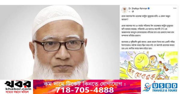 ডা. শফিকুর রহমান লেখেন, ‘প্রথম আলোর ঈদ শুভেচ্ছা কার্টুনে কুকুরের ছবি, এ কেমন অদ্ভুত আচরণ? প্রথম আলো গত ৩০ মার্চের পত্রিকায় ঈদ শুভেচ্ছার কার্টুনে কুকুরের ছবি ব্যবহার করেছে।