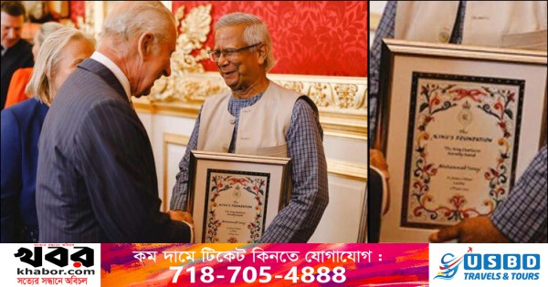 পুরস্কার অনুষ্ঠানের আগে রাজা তৃতীয় চার্লস বাকিংহাম প্যালেসে প্রধান উপদেষ্টা অধ্যাপক ইউনূসকে স্বাগত জানান।