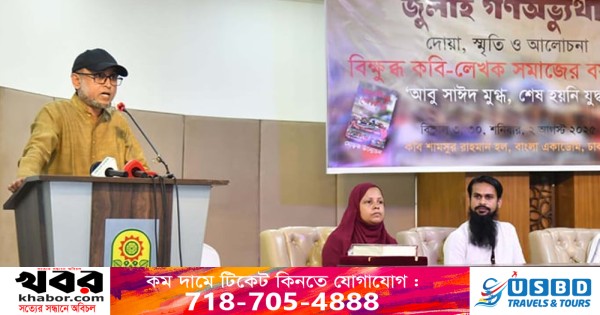 আজ শনিবার রাজধানীর বাংলা একাডেমির কবি শামসুর রাহমান মিলনায়তনে ‘জুলাই গণ-অভ্যুত্থান : বিক্ষুব্ধ কবি-লেখক সমাজের বর্ষপূর্তি’ উপলক্ষে আয়োজিত আলোচনাসভায় প্রধান অতিথির বক্তব্যে এসব কথা বলেন তিনি।