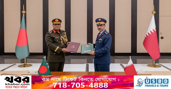 রোববার (১৬ নভেম্বর) আন্তঃবাহিনী জনসংযোগ পরিদপ্তরের (আইএসপিআর) এক সংবাদ বিজ্ঞপ্তিতে জানানো হয়েছে, কাতারের দোহাতে এই চুক্তিতে স্বাক্ষর করেন বাংলাদেশ সশস্ত্র বাহিনী বিভাগের প্রিন্সিপাল স্টাফ অফিসার লেফটেন্যান্ট জেনারেল এস এম কামরুল হাসান এবং কাতার সশস্ত্র বাহিনীর চীফ অফ স্টাফ লেফটেন্যান্ট জেনারেল (পাইলট) জাসিম বিন মোহাম্মদ আল মান্নাই।