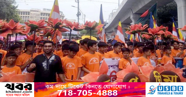 ঢাকা: বৌদ্ধ সম্প্রদায়ের প্রধান ধর্মীয় উৎসব বুদ্ধপূর্ণিমা সাড়ম্বরে উদযাপনের লক্ষ্যে রাজধানীতে বর্ণাঢ্য শোভাযাত্রা অনুষ্ঠিত হয়েছে। আজ বৃহস্পতিবার (৪ মে) সকাল সাড়ে ১০টার দিকে শাহবাগের জাতীয় জাদুঘরের সামনে থেকে শোভাযাত্রাটি শুরু হয়ে শহীদ মিনারে গিয়ে শেষ হয়। এতে নারী-পুরুষ-শিশু-বৃদ্ধসহ কয়েক হাজার মানুষ বিভিন্ন প্রতীক নিয়ে অংশ নেন।