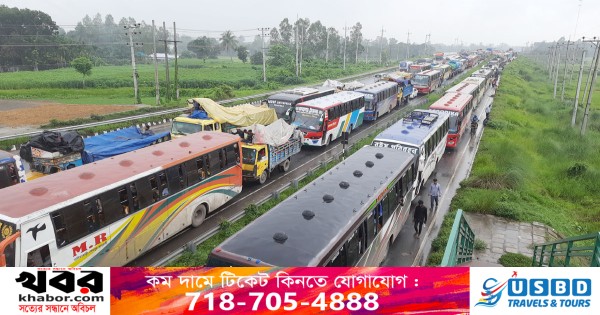 এদিকে মহাসড়কে যানজট ও বৃষ্টির কারণে চরম বিপাকে পড়েছেন ঘরমুখো মানুষ। বিশেষ করে যারা বাস না পেয়ে খোলা ট্রাক ও পিকআপযোগে বাড়ি ফিরছেন।