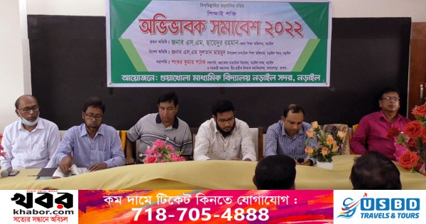ফরহাদ খান, নড়াইল: নড়াইল সদর উপজেলার গুয়াখোলা মাধ্যমিক বিদ্যালয়ে শিক্ষার্থীদের মোবাইল ফোন ব্যবহার নিষিদ্ধ এবং শিক্ষার মানোন্নয়নে বিষয়ে অভিভাবক সমাবেশ অনুষ্ঠিত হয়েছে। বুধবার (২৭ জুলাই) দুপুরে বিদ্যালয় মিলনায়তনে এ সমাবেশ অনুষ্ঠিত হয়।