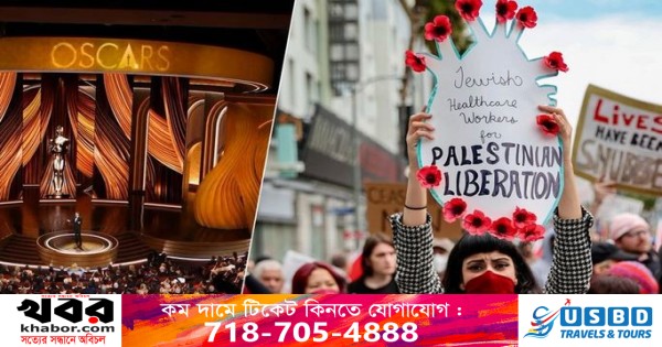 একদিকে অস্কারের জাঁকজমকপূর্ণ মহাআয়োজন, অপরদিকে ফিলিস্তিনিদের পক্ষে শত শত মানুষের বিক্ষোভ-অবস্থান। গতকাল (১০ মার্চ) এমন দৃশ্যই দেখা গেল যুক্তরাষ্ট্রের ক্যালিফোর্নিয়ায় লস অ্যাঞ্জেলেসে। লস অ্যাঞ্জেলেসের হলিউড অ্যান্ড হাইল্যান্ড সেন্টারের ডলবি থিয়েটারে ১০ মার্চ রাতে (বাংলাদেশ সময় ১১ মার্চ, ভোর ৫টা) শুরু হয় পুরস্কার বিতরণ। তবে অস্কার শুরুর আগ মুহূর্তে থিয়েটার থেকে এক মাইল দূরে সিনেরমা ডোমের রাস্তায় ইসরায়েল-হামাস যুদ্ধ বন্ধের দাবী নিয়ে বিক্ষোভ করেছে শত শত মানুষ।