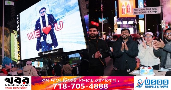 সেসব ছবি পোস্ট করে সেই ভক্ত ফেসবুকে লিখেছেন, ‘হ্যাপি বার্থ ডে গ্লোবাল সুপারস্টার শাকিব খান। একজন শাকিবিয়ান হিসেবে আমার স্বপ্ন আজ সত্যি হয়েছে। আমার দেশের সুপারস্টারের শুভ জন্মদিন আজ বহির্বিশ্বের সবচেয়ে বড় বাণিজ্যিক শহর নিউ ইয়র্ক টাইমস স্কয়ারে পালন করলাম।