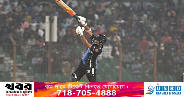 তাঁকে দারুণ সঙ্গ দিয়েছেন শেখ মেহেদী হাসান। পঞ্চম উইকেট জুটিতে দুজনের সংগ্রহ ৬৮ রান। মেহেদী ১৭ বলে চার ছক্কায় ৩৪ রান করে বিলাল খানের বলে আউট হন।