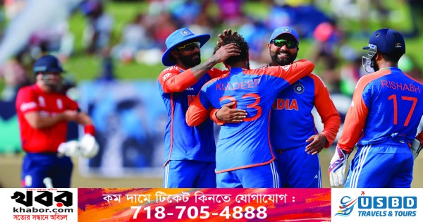 গায়ানায় অধিনায়ক রোহিত শর্মার হাফ সেঞ্চুরি ও সুর্যকুমার যাদবের ব্যাটে চড়ে ১৭১ রানের সংগ্রহ পায় ভারত। লক্ষ্য তাড়া করতে নেমে অক্ষর প্যাটেল-কুলদিপ জাদবের স্পিন বিষে জস বাটলারের দলের ইনিংস থেমেছে ১০৩ রানে। তাতে ভারতের জয় ৬৮ রানে।