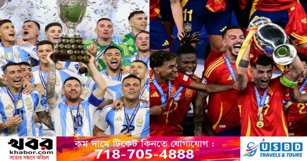 ইংল্যান্ডকে ২-১ গোলে হারিয়ে স্পেন ইউরো চ্যাম্পিয়ন হওয়ার পর আজ সকালে আর্জেন্টিনাও কোপা আমেরিকায় চ্যাম্পিয়ন হয়েছে।