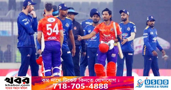 প্রথমে বল হাতে তাসকিন আহমেদ আগুন ঝরালেন ঢাকার ব্যাটারদের ওপর, এরপর ঢাকার বোলারদের বেদড়ক পেটালেন রাজশাহীর অধিনায়ক এনামুল হক বিজয়। এই দু’জনের ব্যাটিং এবং বোলিংয়ে দূর্বার রাজশাহীর সামনে দাঁড়াতেই পারলো না নায়ক শাকিব খানের দল ঢাকা ক্যাপিটালস। ১১ বল হাতে রেখে ৭ উইকেটের ব্যবধানে জয় তুলে নিলো দূর্বার রাজশাহী।