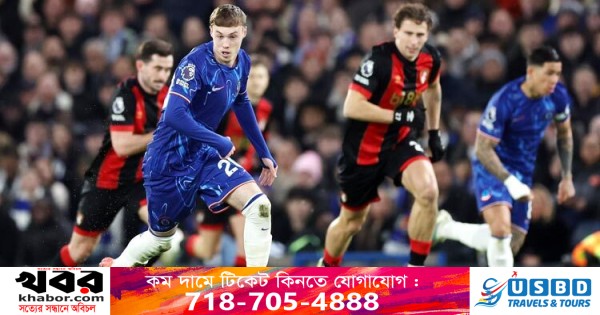 মঙ্গলবার ঘরের মাঠ স্ট্যামফোর্ড ব্রিজে থ্রিলার ম্যাচে ২-২ গোলে ড্র করেছে চেলসি। পুরো ম্যাচে স্বাগতিকদের দাপট থাকলেও গোলে এগিয়ে থাকে বোর্নমাউথ।