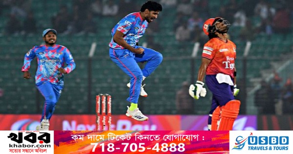 যদিও পর পর দুই বলে জীবন পেয়েছিলেন তাদের ওপেনার মোহাম্মদ হারিস। বিনুরা ফার্ন্দান্দোর বলে পাকিস্তানি ব্যাটারের তুলে দেওয়া দুটি ক্যাচই মিস করেন খালেদ আহমেদ। তবে সেই সুযোগ কাজে লাগাতে পারেননি রাজশাহীর ওপেনার।