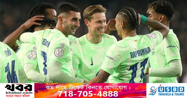 গতকাল বৃহস্পতিবার বার্সার একপেশে জয় সম্ভব হয়েছে ফরোয়ার্ড ফেরান তোরেসের দুর্দান্ত পারফরম্যান্সে। মাত্র ৩০ মিনিটে হ্যাটট্রিক করে বার্সাকে কোপা দেল রে কোয়ার্টার ফাইনালে বিশাল জয় এনে দিয়েছেন তিনি।