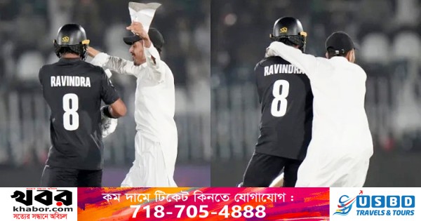 ক্রিকেট মাঠে হুট করে দর্শক ঢুকে পড়ার ঘটনা নতুন কিছু নয়। তেমনই এক ঘটনা দেখা গেলো চ্যাম্পিয়ন্স ট্রফিতে বাংলাদেশ এবং নিউজিল্যান্ডের মধ্যকার ম্যাচে। এক দর্শক মাঠে ঢুকে নিউজিল্যান্ডের তরুণ ওপেনার রাচিন রবীন্দ্রকে পেছন থেকে জড়িয়ে ধরেন।