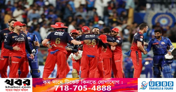 আজ সোমবার আগে ব্যাট করতে নেমে বিরাট কোহলি ও রাজত পতিদারের ফিফটিতে ৫ উইকেটে ২২১ রানের বিশাল পুঁজি গড়ে। জবাবে ৯ উইকেটে ২০৯ রান করে মুম্বাই।