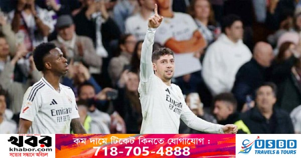 রোববার রাতে লা লিগার উত্তেজনাপূর্ণ ম্যাচে ফেদেরিকো ভালভার্দের ৯৩তম মিনিটে এক দুর্দান্ত ভলিতে অ্যাথলেটিক বিলবাওয়ের বিপক্ষে ১-০ গোলের জয় ছিনিয়ে নিয়েছে নিয়েছে রিয়াল। এই জয়ে শিরোপা দৌড়ে টিকে রইলো কার্লো আনচেলত্তির দল।