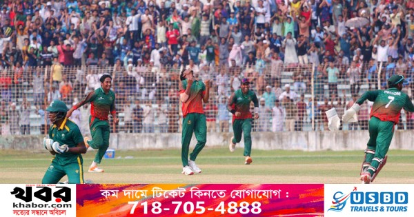 তবে দুর্দান্ত বোলিং আর ফিল্ডিংয়ে শেষ পর্যন্ত জয় পেয়েছে বাংলাদেশই। দক্ষিণ আফ্রিকাকে ৩৪ রানে হারিয়ে ২-১ ব্যবধানে সিরিজ ঘরে তুলেছে আকরব আলীর দল। বাংলাদেশের ২২৫ রানের জবাবে দক্ষিণ আফ্রিকা দল অলআউট হয়ে গেছে ৩৮.২ ওভারে মাত্র ১৯১ রানে।