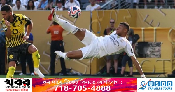 শেষ মুহূর্তে বাইসাইকেল কিকে দুর্দান্ত গোল করে রিয়াল মাদ্রিদকে নাটকীয় জয় উপহার দিয়েছেন কিলিয়ান এমবাপে। ফরাসি তারকার অবিশ্বাস্য গোলে জার্মান বুন্দেসলিগার ক্লাব বরুশিয়া ডর্টমুন্ডকে ৩-২ ব্যবধানে হারিয়ে ফিফা ক্লাব বিশ্বকাপের সেমিফাইনালে উঠেছে রিয়াল।