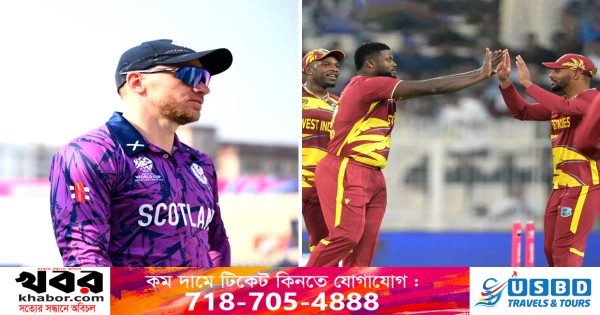 টস হেরে আগে ব্যাটিংয়ে নেমে শিমরন হেটমায়ারের ঝোড়ো ফিফটিতে (৩৬ বলে ৬৪) ৫ উইকেটে ১৮২ রান করেছিল ওয়েস্ট ইন্ডিজ। জবাবে ৭ বল বাকি থাকতে ১৪৭ রানে অলআউট হয় স্কটল্যান্ড।