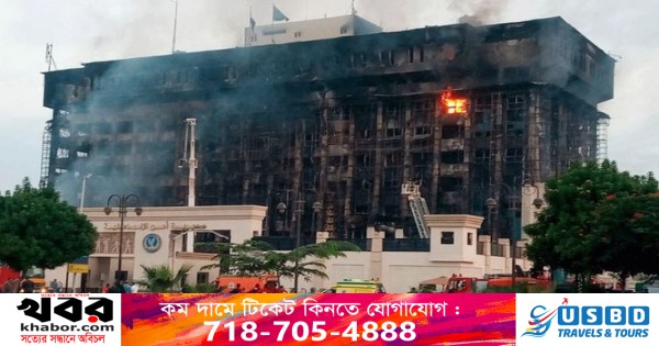 সামাজিক যোগাযোগ মাধ্যমে পোস্ট করা ভিডিওগুলোতে দেখা যায়, পুরো ভবনটি আগুনে ঢেকে গেছে।