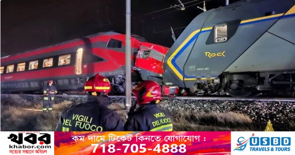 ইতালিতে দুটি ট্রেনের মুখোমুখি সংঘর্ষের ঘটনা ঘটেছে। স্থানীয় সময় রবিবার গভীর রাতে উত্তর ইতালিতে এই দুর্ঘটনা ঘটে। সংঘর্ষে ১৭ জন আহত হয়েছে তবে গুরুত্বরভাবে কেউ আহত হয়নি। সংঘর্ষের সময় দুটি ট্রেন কম গতিতে ছিল বলে দমকলকর্মী এবং ট্রেন অপারেটর জানিয়েছেন।