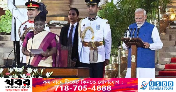রোববার রাত ৮টার দিকে দিল্লির রাষ্ট্রপতি ভবনে অনুষ্ঠিত হয় মোদীর শপথ অনুষ্ঠান। তাকে শপথবাক্য পাঠ করান ভারতীয় রাষ্ট্রপতি দ্রৌপদী মুর্মু। এরপর একে একে শপথ নেন অন্য মন্ত্রীরাও।