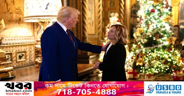 ইতালির প্রধানমন্ত্রী জর্জিয়া মেলোনি নবনির্বাচিত মার্কিন প্রেসিডেন্ট ডোনাল্ড ট্রাম্পের সঙ্গে অনানুষ্ঠানিক ও আকস্মিক সাক্ষাৎ করেছেন। ফ্লোরিডায় ট্রাম্পের মার-এ-লাগো বাসভবনে শনিবার এই সাক্ষাৎ হয়। মেলোনির কার্যালয় রবিবার এই তথ্য জানিয়েছে।