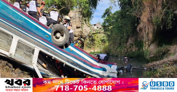 গুয়াতেমালায় একটি যাত্রীবাহী বাস নিয়ন্ত্রণ হারিয়ে সেতুর রেলিং ভেঙে গভীর খাদে পড়ে গেলে অন্তত ৫৫ জন নিহত হয়েছেন। সোমবার (১০ ফেব্রুয়ারি) দেশটির কর্তৃপক্ষ এ তথ্য নিশ্চিত করেছে। এটি সাম্প্রতিক বছরগুলোর মধ্যে লাতিন আমেরিকায় সবচেয়ে ভয়াবহ সড়ক দুর্ঘটনাগুলোর একটি।