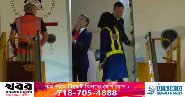 এরপর লাল জ্যাকেট পড়া স্ত্রীকে নিয়ে বিমানের সিঁড়িতে আসেন ম্যাক্রোঁ। তিনি স্ত্রীর দিকে একটি হাত বাড়িয়ে দিলেও সাড়া পাননি। তারা সিঁড়ি দিয়ে পাশাপাশি হেঁটে নেমে আসেন।