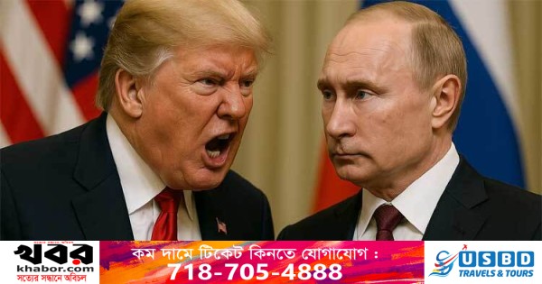 ট্রাম্প বলেন, তিনি ভ্লাদিমির পুতিনের ওপর ‘খুব, খুব অসন্তুষ্ট’। তিনি জোর দিয়ে বলেন, রুশ নেতা মারাত্মক এই সংঘাতের অবসান ঘটাতে অস্বীকৃতি জানানোয়ে অবশেষে তার ধৈর্যের বাধ ভেঙে গেছে।