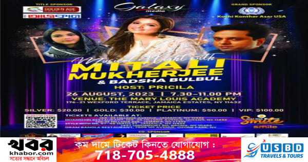 নিউইয়র্ক: দুই বাংলার জনপ্রিয় সংগীত শিল্পী মিতালী মুখার্জী নিউইয়র্কে আসছেন। গ্যালাক্সী মিডিয়া আগামী ২৬ আগস্ট নিউইয়র্কের জ্যামাইকার মেরী লুইস একাডেমী মিলনায়তনে আয়োজন করতে যাচ্ছে মিউজিক্যাল নাইট উইথ মিতালী মুখার্জী এন্ড বাদশা বুলবুল। “এ জীবন তোমাকে দিলাম বন্ধু তুমি শুধু ভালোবাসা দিও” “ভালোবাসা যত বড় জীবন তত বড় নয়” “যেটুকু সময় তুমি থাকো পাশে” সহ শত শত জনপ্রিয় গান গেয়ে নব্বই দশকে দর্শক-শ্রোতাদের বিমোহিত করে রাখতেন বাদশা বুলবুল।