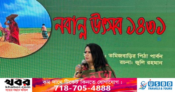 নিউইয়র্কের অন্যতম সাহিত্য সংগঠন সাজুফতা সাহিত্য ক্লাব নিউইয়র্ক বর্ণাঢ্য আয়োজনে উদযাপন করেছে ‘নবান্ন উৎসব’। গত ৫ জুলাই সন্ধ্যায় ব্রঙ্কসের গোল্ডেন প্যালেস পার্টি হলে সাজুফতা সাহিত্য ক্লাবের সভাপতি কবি জুলি রহমানের পরিচালনায় ভিন্ন আমেজের এ উৎসব অনুষ্ঠিত হয়। এতে বিশেষ আয়োজন ছিল তজিম বাড়ির পিঠা পার্বণ। ছিল কবিতা পাঠ, নৃত্যনাট্য, সঙ্গীত, নৃত্য সহ মনোজ্ঞ সব পরিবেশনা।