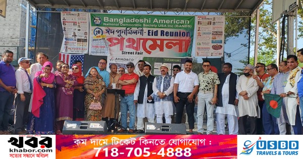 নিউইয়র্ক সিটি মেয়র এরিক অ্যাডামসের উপস্থিতি আর দেশ-প্রবাসের জনপ্রিয় শিল্পীদের মনোজ্ঞ সাংস্কৃতিক পরিবেশনার মধ্য দিয়ে অনুষ্ঠিত হয়ে গেল বাংলাদেশী-আমেরিকান ন্যাশনাল ডেমোক্রেটিক সোসাইটি-ব্যান্ডস এর ঈদ পুুনর্মিলনী ও পথমেলা। প্রবাসে বাঙালী সংস্কৃতি, ঐতিহ্য ও দেশীয় পণ্যকে তুলে ধরার প্রয়াসে গত ২৪ জুলাই রোববার বাঙালী অধ্যুষিত নিউইয়র্কে ব্রঙ্কসের পার্ডি স্ট্রিটে বসেছিল দিনব্যাপী এ ঈদ আনন্দমেলা। মেলায় আসা হাজারও দর্শক-শ্রোতা প্রাণভরে উপভোগ করেন এ আনন্দ আয়োজন। খবর ইউএসএনিউজঅনলাইন.কম’র।