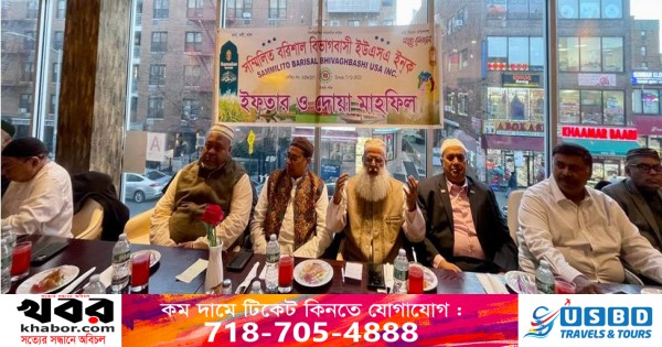 গত ৯ই মার্চ ২০২৫, রবিবার, নিউইয়র্কের জ্যাকসন হাইটসের চিফস মহল রেস্টুরেন্টের পার্টি হলে অনুষ্ঠিত হয়েছে সম্মেলিত বরিশাল বিভাগবাসী ইউএসএ আয়োজনে এক বিশেষ ইফতার ও দোয়া মাহফিল। এই মাহফিলটি বরিশাল বিভাগের প্রবাসী সদস্যদের একত্রিত করে এক স্বতন্ত্র ঐতিহাসিক মুহূর্ত তৈরি করেছে।খবর বাপসনিউজ ।অনুষ্ঠানে সভাপতিত্ব করেন সংগঠনের সভাপতি এমএ সালাম আকন্দ ও পরিচালক করেন সাধারণ সম্পাদক লস্কর মইজুর রহমান জুয়েল ।