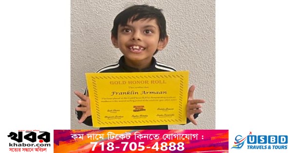 ফ্রাংকলিন থোকন আরমান গত ১ এপ্রিল ২০২৫,মংগলবার নিউইয়র্কের কুইন্সের অষ্টারিয়ার পিএস-৭০ এর ১ম শ্রেণীর মেধাবী শিক্ষার্থী হিসেবে গোল্ড অনার রোল সাইটেশন পেয়েছে একাডেমি এয়ার ২০২৪-২০২৫ ।ফ্রাংকলিন থোকন আরমান বাপসনিউজ ও এনওয়াইবিডিনিউজ এডিটর ও রাজনৈতিক সিনিয়র সাংবাদিক হাকিকুল ইসলাম খোকন এবং নিউজ পোর্টাল জার্নালিস্ট আয়েশা আক্তার রুবি”র একমাত্র তনয় ।