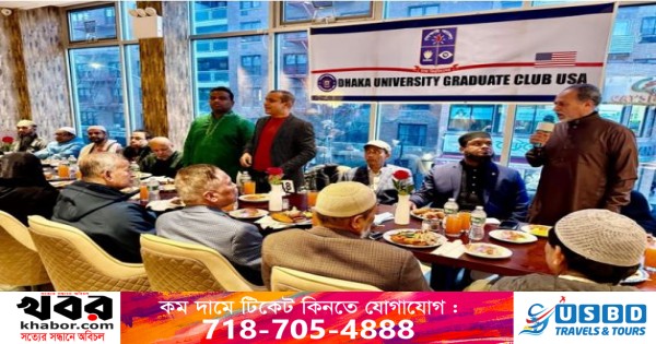 নিউইয়র্কের জ্যাকসন হাইটসে শেফ মহল রেস্টুরেন্টে গত ২২ মার্চ শনিবার একটি বিশেষ দোয়া ও ইফতার মাহফিলের আয়োজন করা হয় ঢাকা বিশ্ববিদ্যালয় গ্রাজুয়েট ক্লাবের পক্ষ থেকে। এই অনুষ্ঠানে উপস্থিত ছিলেন ক্লাবের নেতৃবৃন্দ, ঢাকা বিশ্ববিদ্যালয়ের প্রাক্তন শিক্ষার্থীরা এবং তাদের পরিবার।