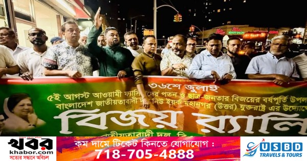 বাংলাদেশ জাতীয়তাবাদী দল নিউইয়র্ক মহানগর (উত্তর) এর উদ্যোগে ৫ই ছাত্র গণ অভ্যুথ্যানের বর্ষপূর্তি উপলক্ষে ব্রঙ্কসের স্টরলিং এভিনিউতে গত মঙ্গলবার এক বিজয় র্যালী ও সমাবেশের আয়োজন করে।