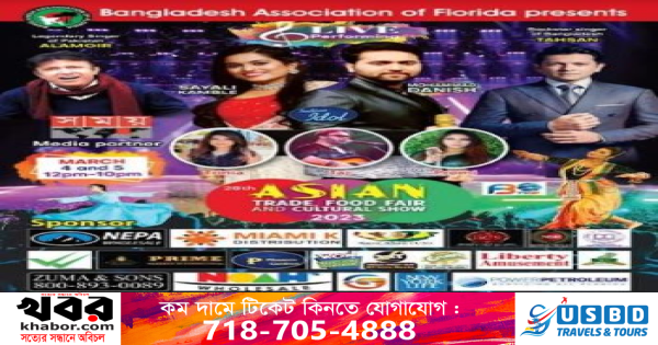 ২৭ তম এশিয়ান এক্সপো ফুড এন্ড কালচারাল শো কে ঘিরে সাউথ ফ্লোরিডার প্রবাসীদের মধ্যে ব্যাপক উ্যসাহ দেখা দিয়েছে। দির্ঘ তিন বছর পর এশিয়ান ফুড ফেয়ার অনুষ্টিত হতে যাচ্ছে। করোনার দীর্ঘ বিরতির পর দুদিন ব্যাপী ২৭ তম এশিয়ান ফুড ও কালচারাল শো অনুষ্টিত হবে ৪ ও ৫ মার্চ সাউথ ফ্লোরিডা ফেয়ার গ্রাউন্ড, সাউথার্ন ব্ললবার্ড, ওয়েস্ট পাম বীচে দুপুর ১২ টা থেকে রাত ১০ টা। এছাড়া ও ৩ রা মার্চ অনুষ্টিত হবে গালা নাইড উইথ এওয়ার্ড ডিনার অনুষ্টিত হবে হিলটন ওয়েস্ট পামবীচ এয়ারপোর্ট এ।